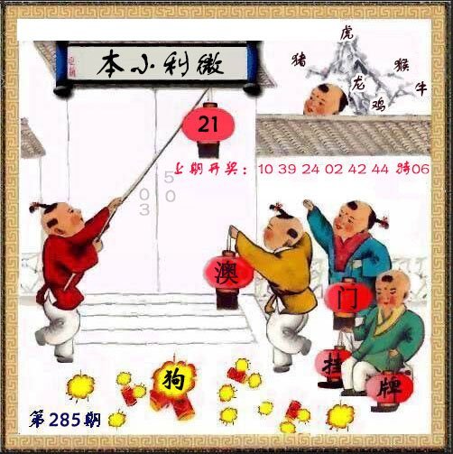 284期挂牌《关门打狗》 解释:比喻将对方控制在自己势力范围内,然后进行有效打击。 解料:战肖虎马狗牛,挂:31鸡,鸡冲兔,爆:虎,虎冲猴。 七肖:虎马狗牛鸡兔猴 五肖:虎马狗牛鸡 四肖:虎马狗牛 三肖:虎马狗 |